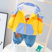 쁘띠앙쥬 봄 가을 남아 데님샤크점퍼 3종세트 (점퍼+티셔츠+청바지)